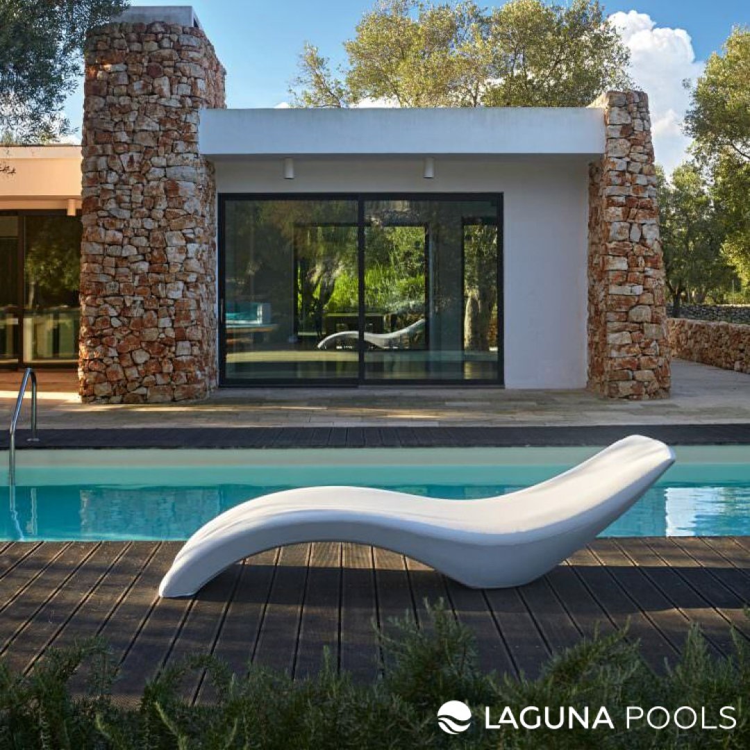 Зона отдыха у бассейна с белым шезлонгом